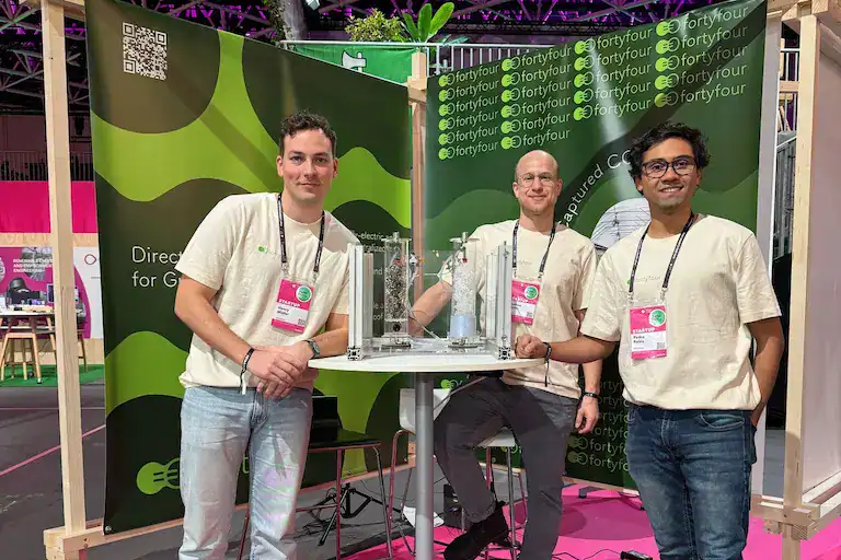 Henry Müller forschte an der Universität St. Gallen zu nachhaltigen Geschäftsmodellen, als er sich irgendwann fragte, ob Theorie allein genug sei. «Ich wollte nicht nur darüber schreiben, wie nachhaltige Startups funktionieren. Ich wollte selbst eines gründen», sagt er. Auf der Suche nach seiner eigenen unternehmerischen Reise wurde er – im wahrsten Sinne des Wortes – in der Luft fündig. Gemeinsam mit Pedro Reina und Mathias Müller gründete er fortyfour, ein Climate-Tech-Startup, das CO₂ direkt aus der Umgebungsluft filtert und in Gewächshäusern nutzbar macht.